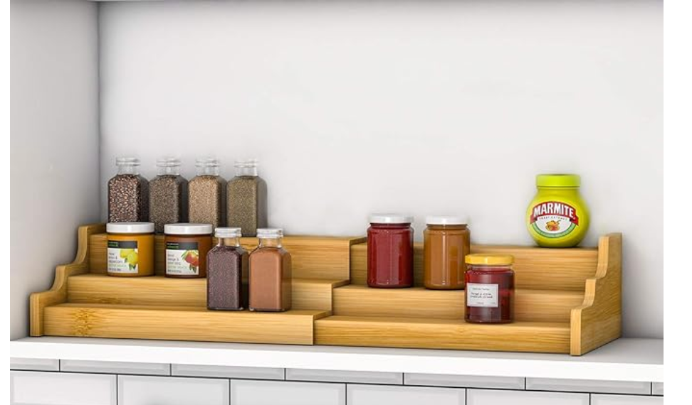 This is expandable and useful for spices, canned goods or anything in the pantry