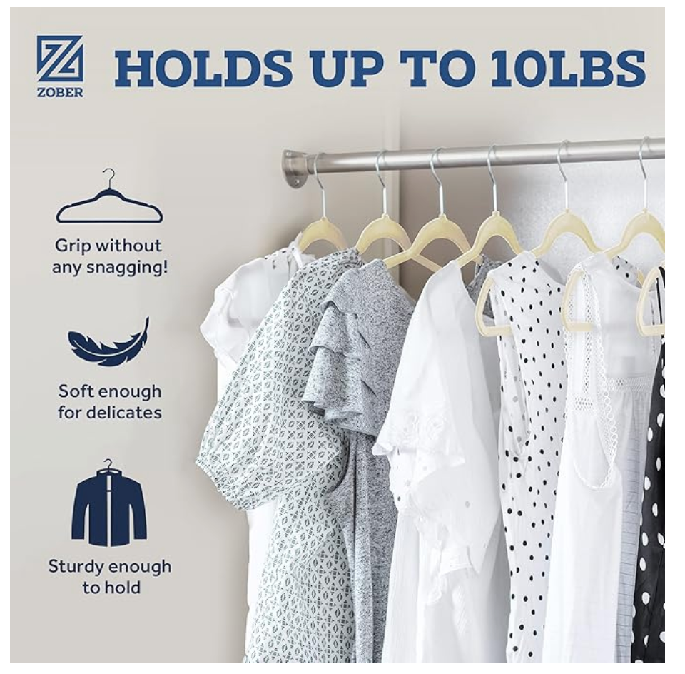 These are perfect for smaller closets as they are thin and don't take up much space. Since they are velvet they also keep the clothes on the hangers better than plastic or wood.